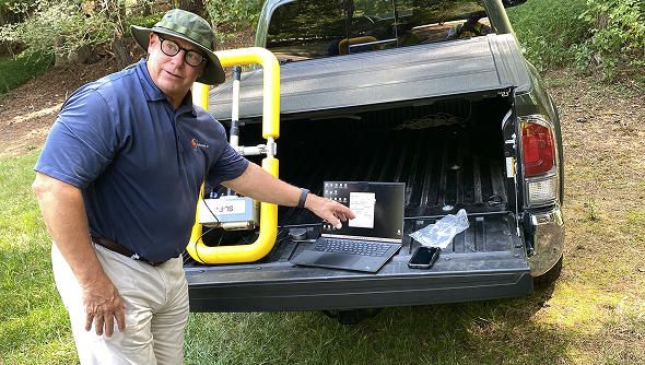 Our technology relies on the fact that sound traveling through air mimics the flow of water through a pipe. We use an active transmitter – think of it as the part “yelling” down the pipe, coupled with a receiver – the “brain” that uses sophisticated algorithms and a patented process to interpret blockages based on what it “hears” coming through the pipe.